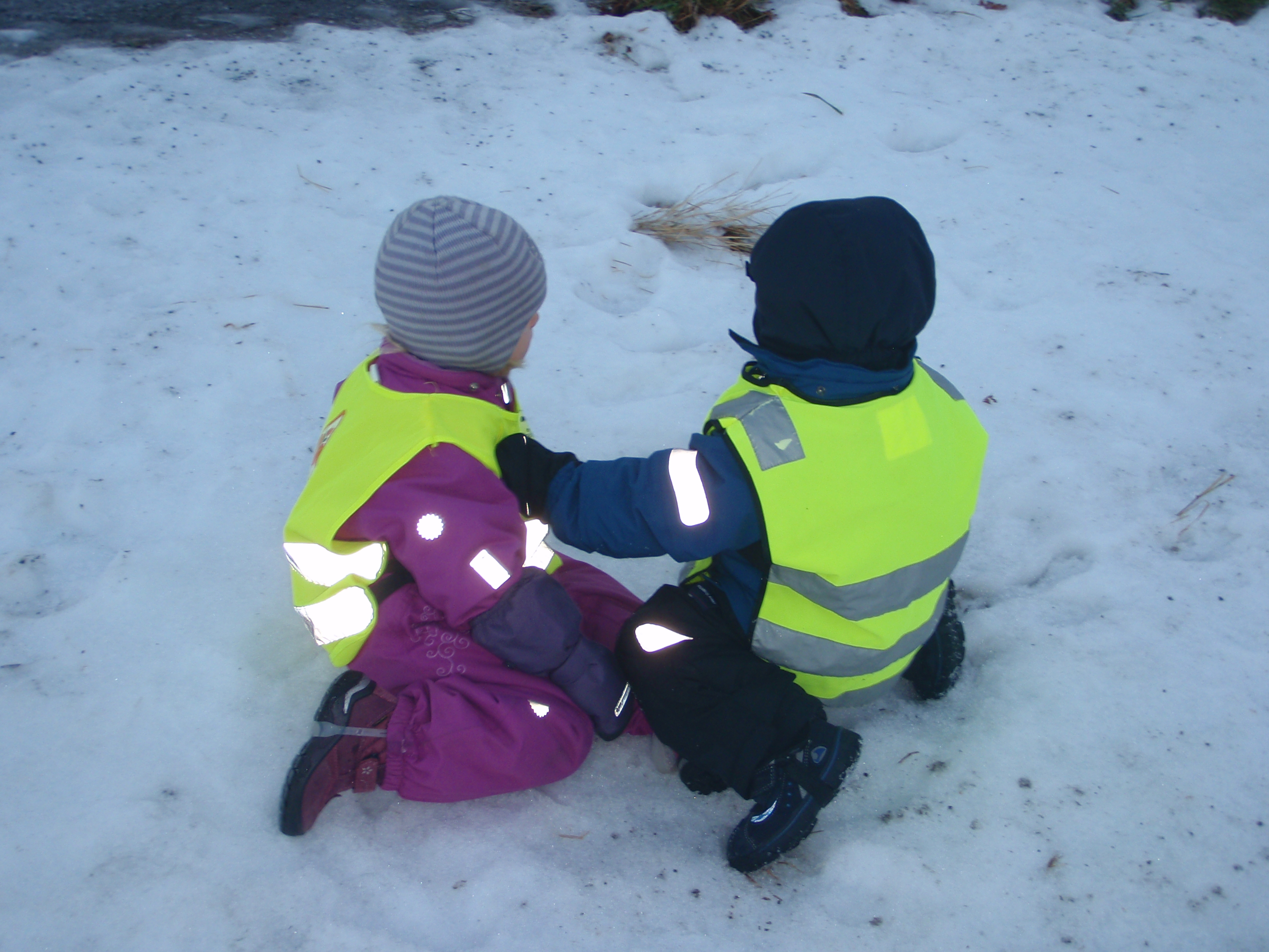 Så er vi kommet til 2013, og det nye året har bydd på noen utfordringer. Det har vært mye is og veldig glatt på barnehagens inngjerdede uteområde. Pga sikkerheten har vi valgt å bruke jordet vårt til utelek.