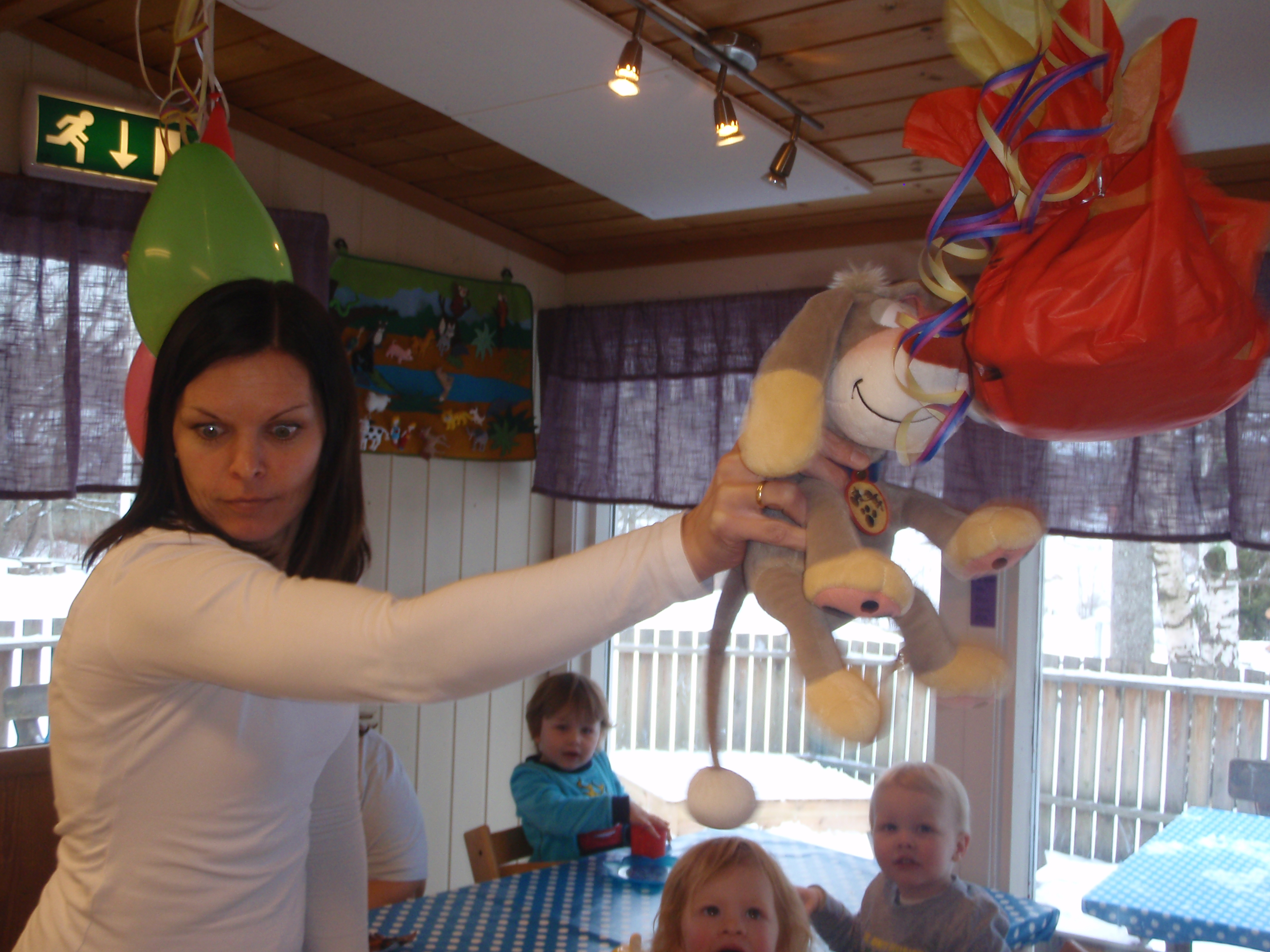 Pysjamasfest med flotte pysjamaser og barn som gledet seg til å gå med nattøyet sitt. Vi koste oss med sovesanger og regler, dramatiserte Lisen får ikke sove og danset til sambarytmer.Pølser og saft hører med når det er fest, og å slå katta ut av sekken.